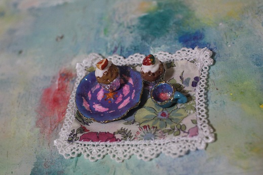 プチケーキを持っていきます。