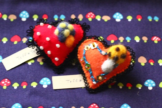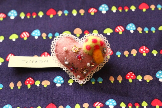 ハートブローチにキノコが。